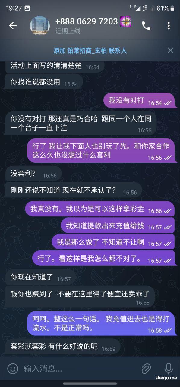 正常打流水提现,充值给百分之3,我以为是正常,说我套彩金。