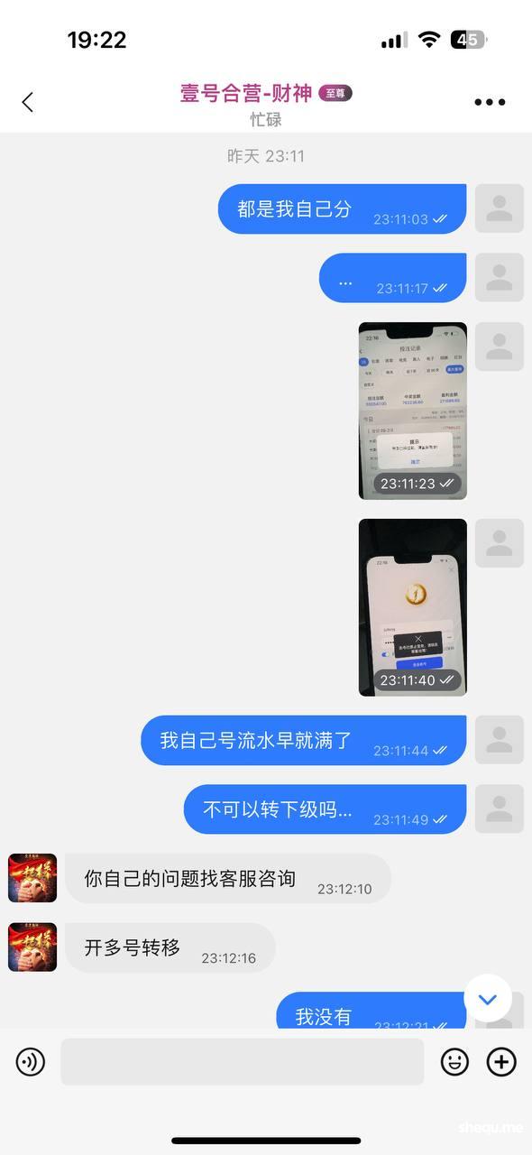 7月27日,用户在南宫系列平台【壹号】充值800元一天内赢取21万元,其中4万元转给下级,1万元提现被故意延迟到账。最终,用户输掉7万元,账号及下级账号被封,提现被冻结。提示玩家警惕,频繁转分触风控,代理需谨慎。