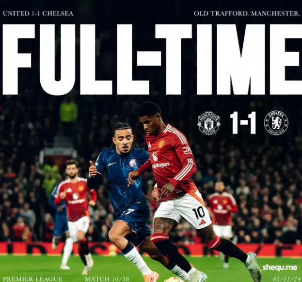 但!68分钟,卡塞米罗过顶长传,福法纳冒顶,霍轮禁区接球欲过门将被带倒!裁判直指12码点!B费骗过门将!1-0!但仅5分钟后,切尔西利用角球机会,凯赛多凌空低平球直窜近角1-1。最后双方战平,过去12次主场面对切尔西的英超比赛,曼联都不败,“梦剧场不通车”。